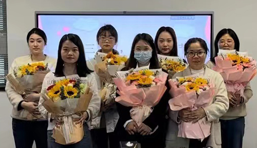 公司為每位女職員準(zhǔn)備了鮮花并送上節(jié)日祝福