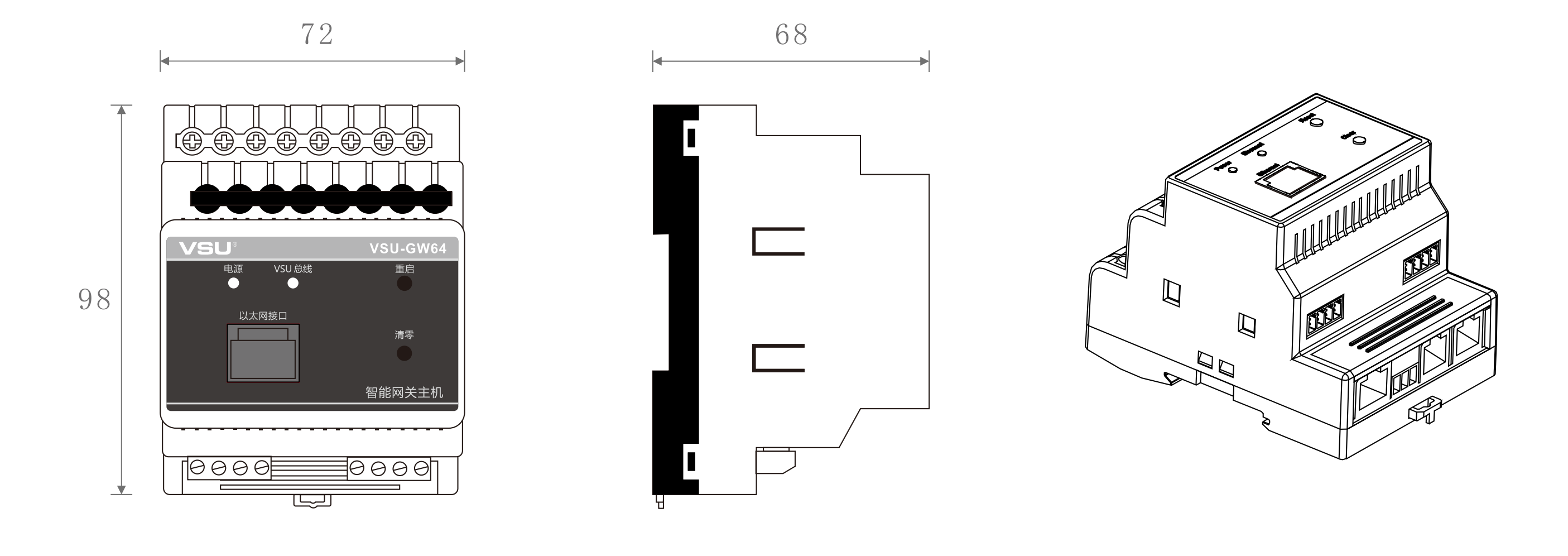 6,LED顯示:電源×,網(wǎng)口×1,總線狀態(tài)×1;